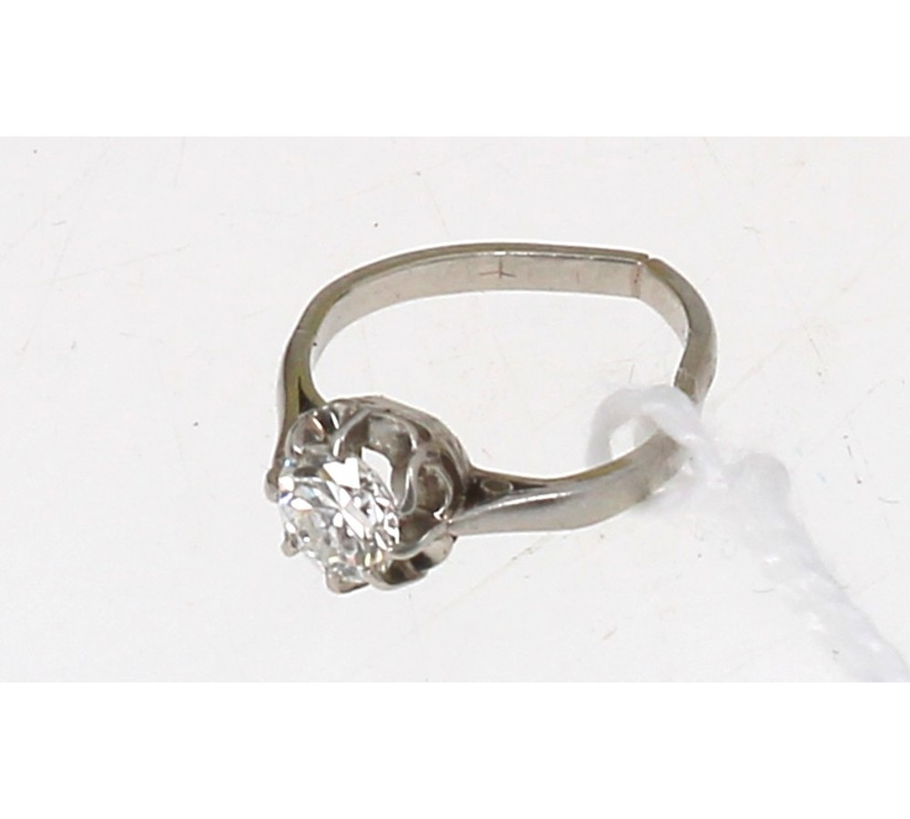Bague solitaire diamant en or gris, diamant 1/2 taille d'environ 0,30 ct, poids brut 2,60 grs (déformation importante sur l'anneau, fente).TDD 46