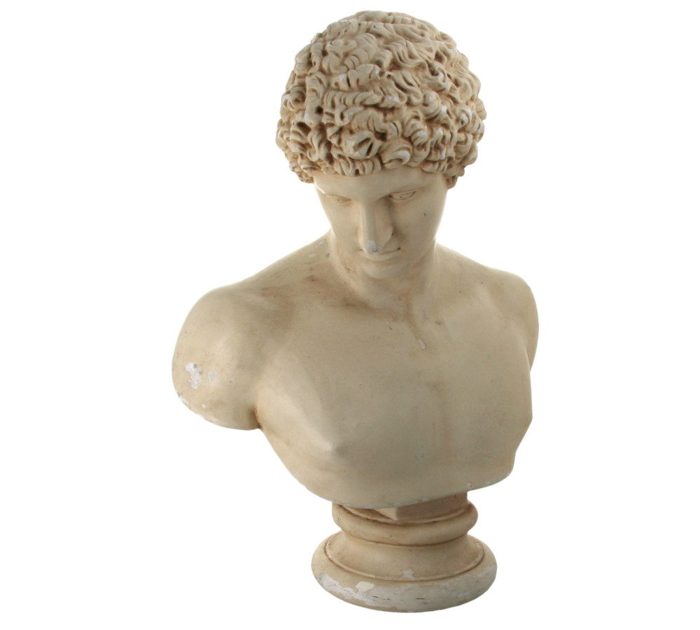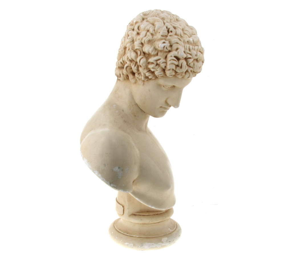 Buste de DAVID, grand sujet en plâtre patiné, H 65 cm (qqs écaillures)