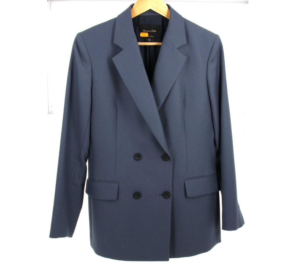 MASSIMO DUTI - Blaser femme 100% laine, bleu gris, taille 42